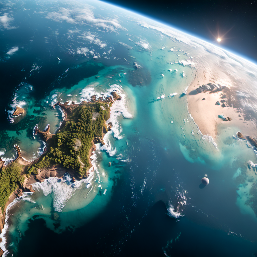 highly detailed photograph of an ocean planet shot from space, cinematic shot <lora:xl_more_art_full>