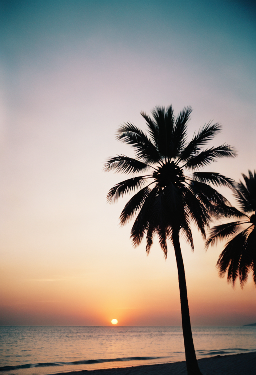 야자수 해변에 기대어 석양을 바라보며 저물어가는 순간, 시간은 멈춘 듯합니다. 바닷물이 발에 닿으며 시원함을 전하고, 석양의 노을은 하늘을 황금빛으로 물들어 갑니다. 이 순간, 모든 걱정과 스트레스는 사라지고 평온함이 내 마음을 감쌉니다. 이 자연의 아름다움 앞에서 작은 내 존재는 감사함으로 가득 찹니다.