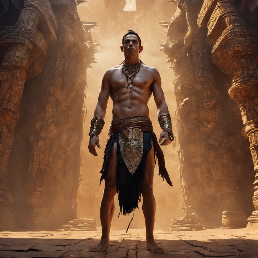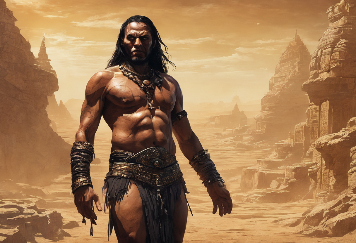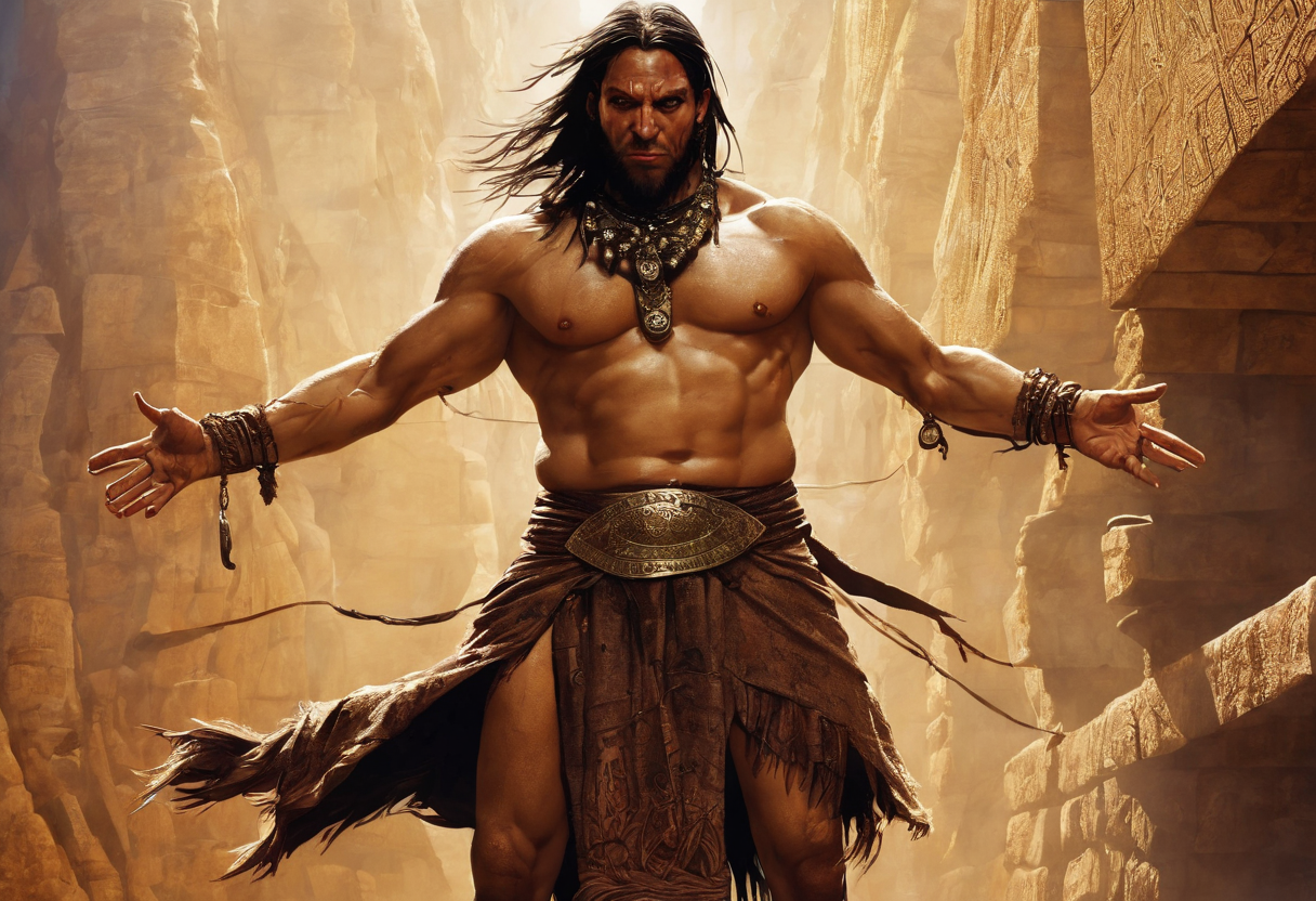 (fixed hand, loincloth:1.4). (Full body shot:1.2), intricate, dark fantasy, ultra detailed, surrealism, weird, expression art, grand scale, epic, zoomed out, wide angle, perfect hands