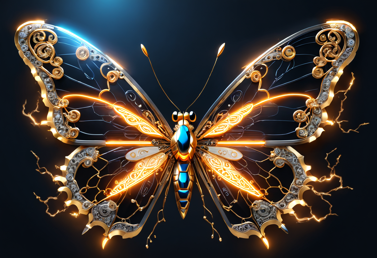 filigreed Buterfly with electric circuit sparks <lora:xl_more_art_full>