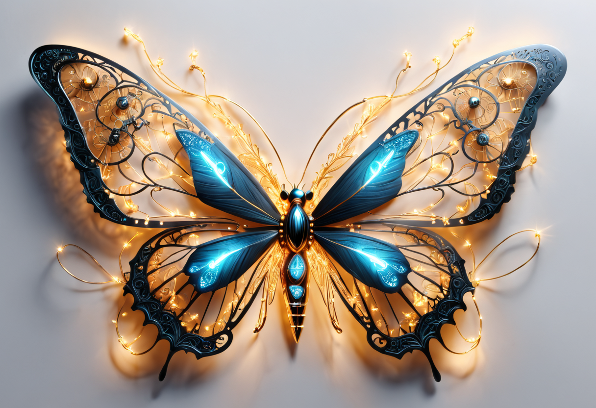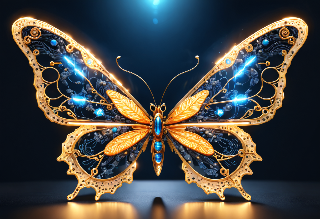 filigreed Buterfly with electric circuit sparks <lora:xl_more_art_full>