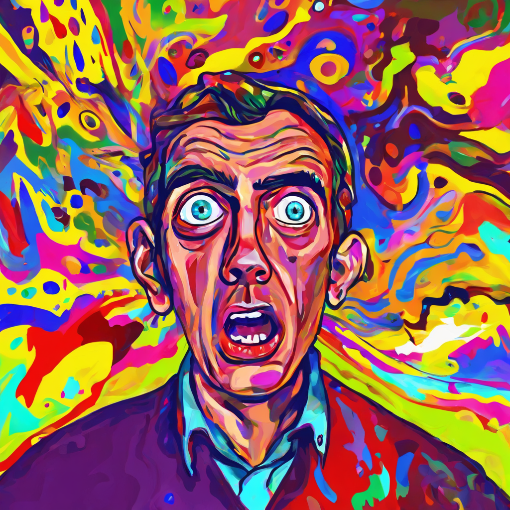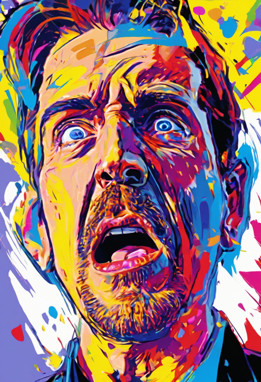 A man with eyes wide open, surprised, in awe, digital art [Style Selector - expressionist]