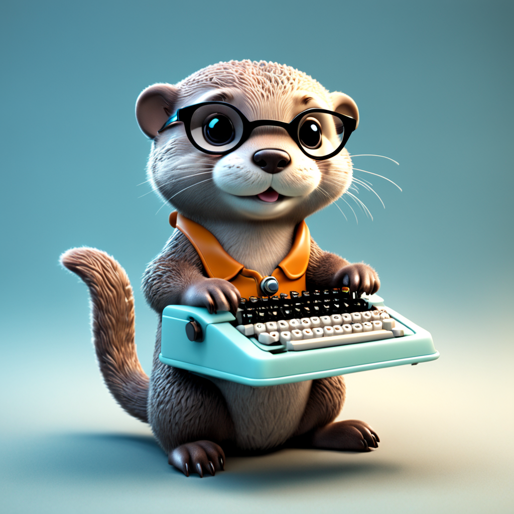 Tiny cute otter typing with a typewriter toy, standing character, glasses on, soft smooth lighting, soft pastel colors, skottie young, 3d blender render, polycount, modular constructivism, pop surrealism, physically based rendering, square image <lora:xl_more_art_full> [Style Selector - 3d model]