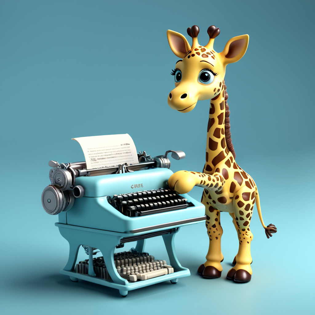 Toy of Tiny cute giraffe using a typewriter, standing character, soft smooth lighting, soft pastel colors, skottie young, 3d blender render, polycount, modular constructivism, pop surrealism, physically based rendering, square image