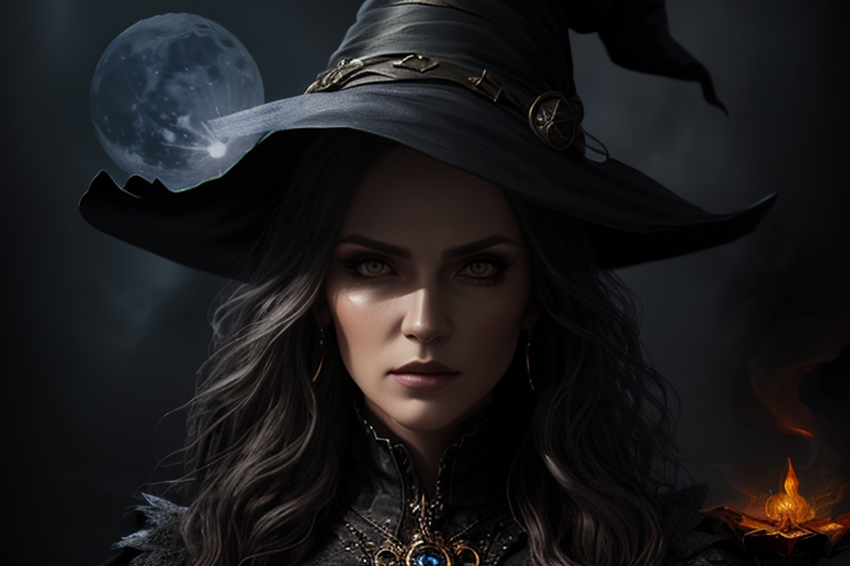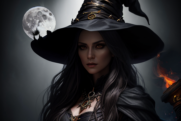 전체 프롬프트: a witch, highly detailed face, half body, studio lighting, dramatic lighting, highly detailed clothing, looking at you, mysterious, dramatic lighting