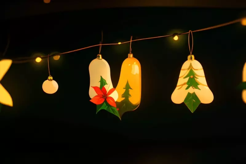 프롬프트: Christmas ornaments, poinsettia, golden lights