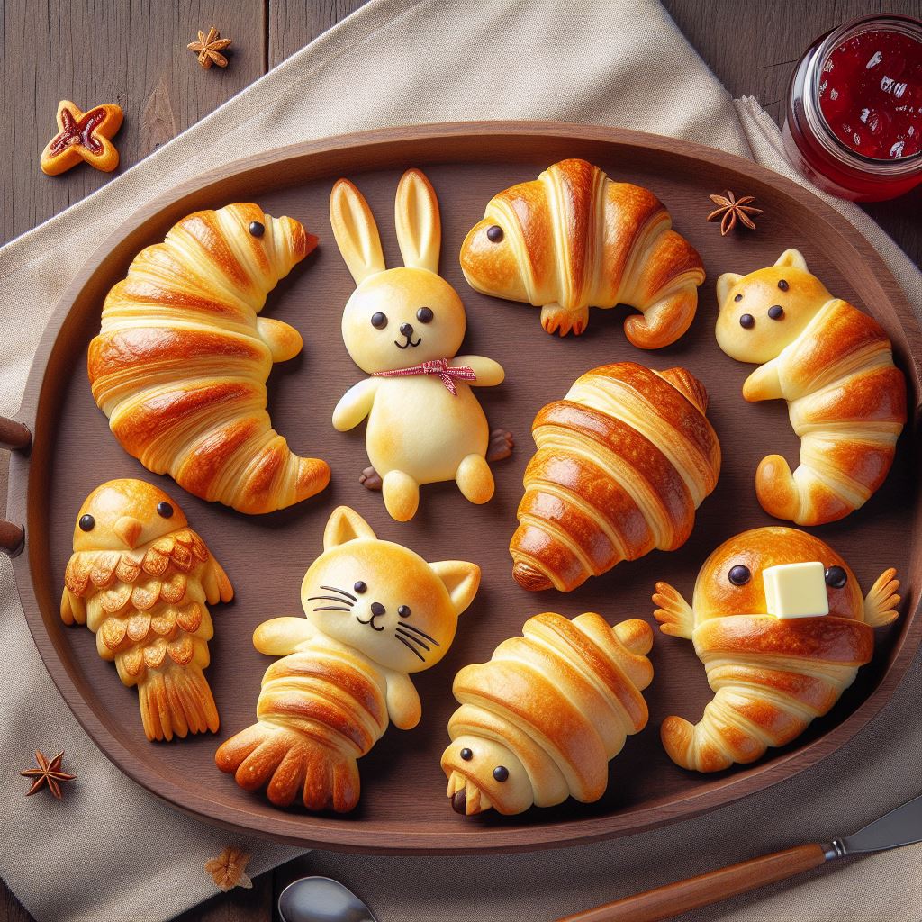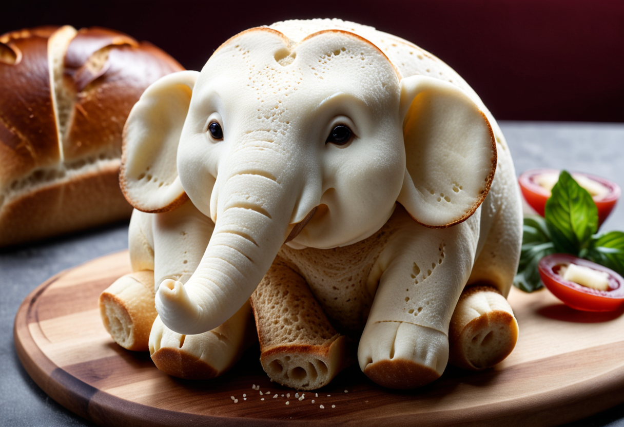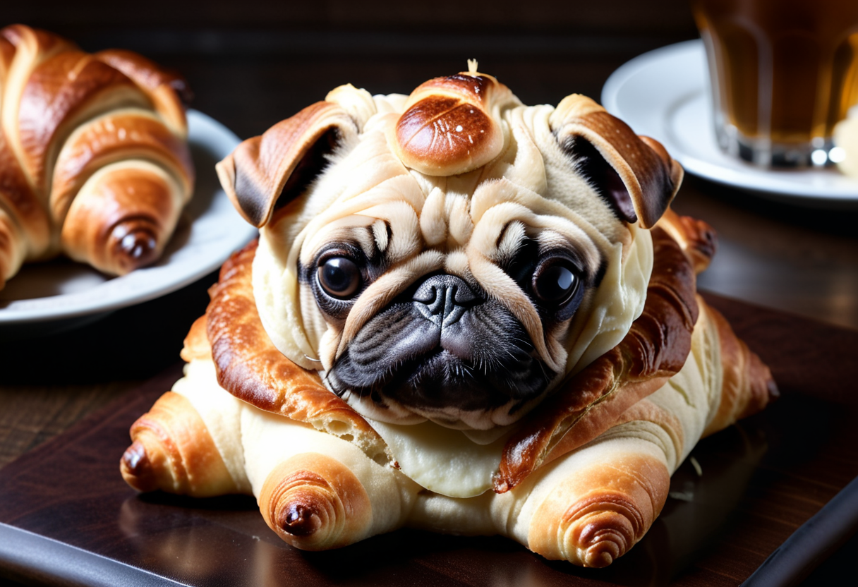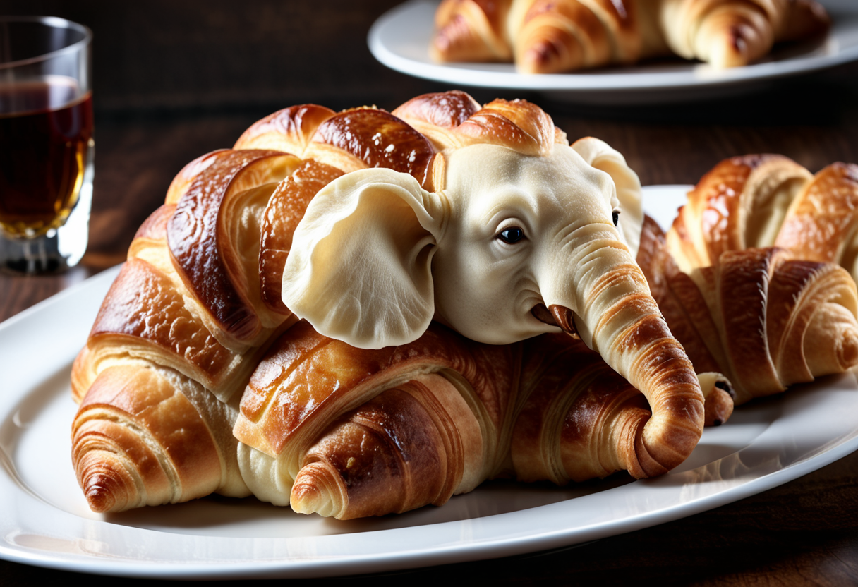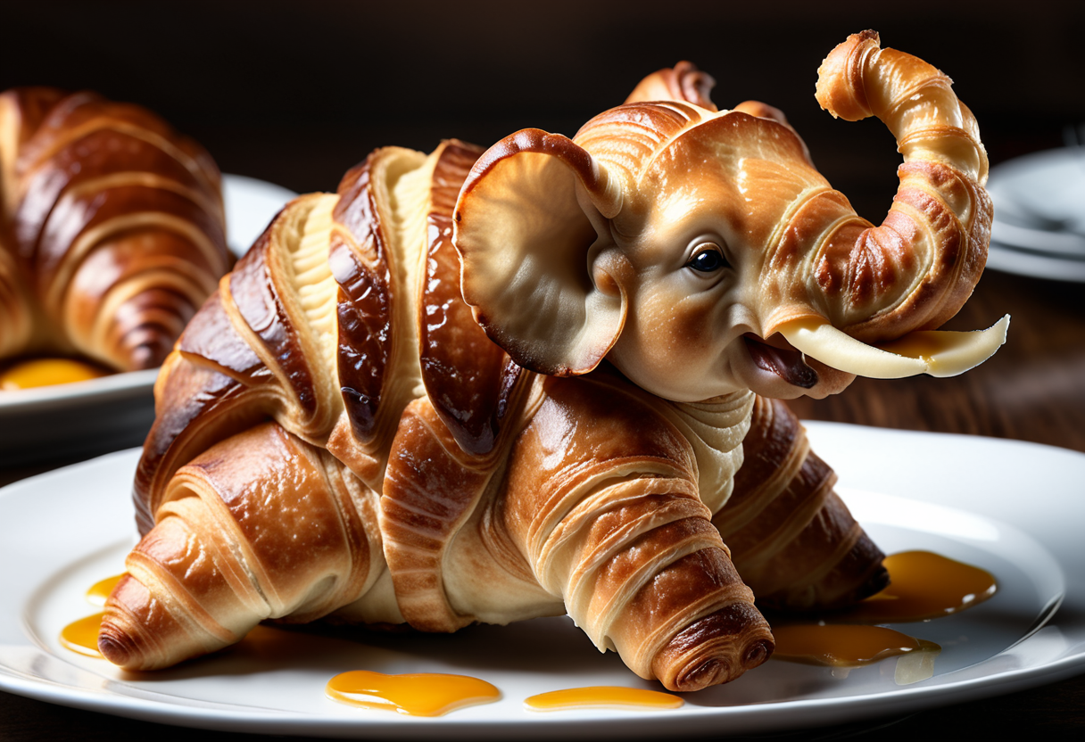 프롬프트 : close up gourmet food, {croissant|bread} in the form of {elephant|pug}