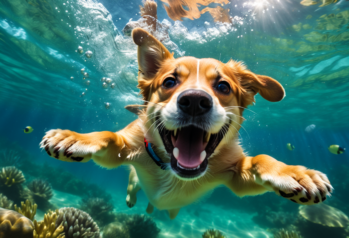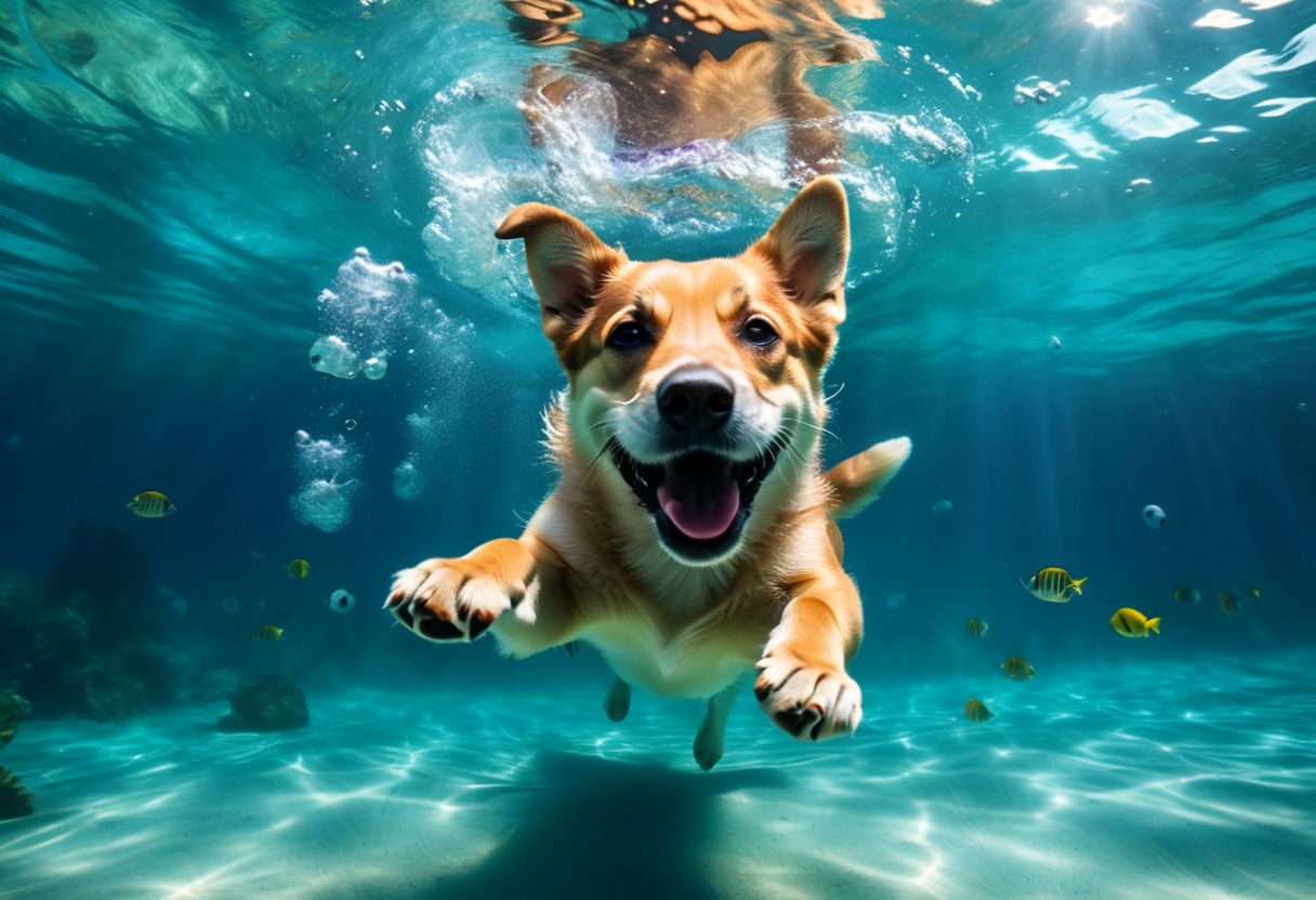프롬프트: Happy dog swimming underwater and having fun. Happy childhood and summer vacation. highly detailed <lora: xl_more_art_full> <lora: add_details_xl>