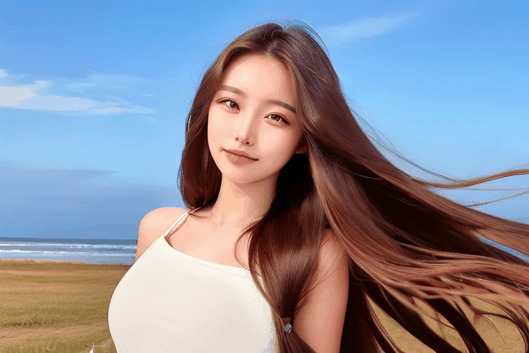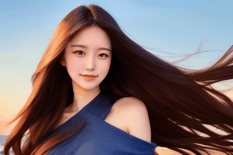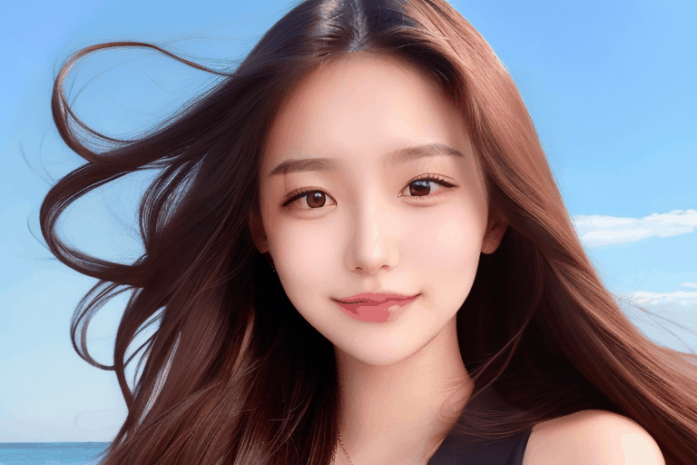 프롬프트: a beautiful 20yo woman, long hair blowing in the wind, simple background sky <lora:koreandolllikenissv20>