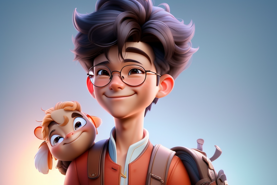 프롬프트: ((best quality)), ((masterpiece)), (detailed) a young man, Pixar protagonist, Disney film character, best quality, cute 3D avatar,8k, ((smile)), simple background, super detail
