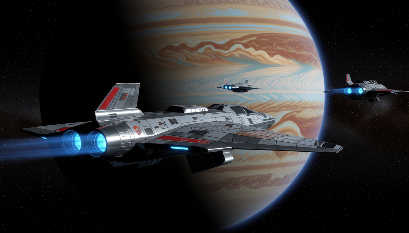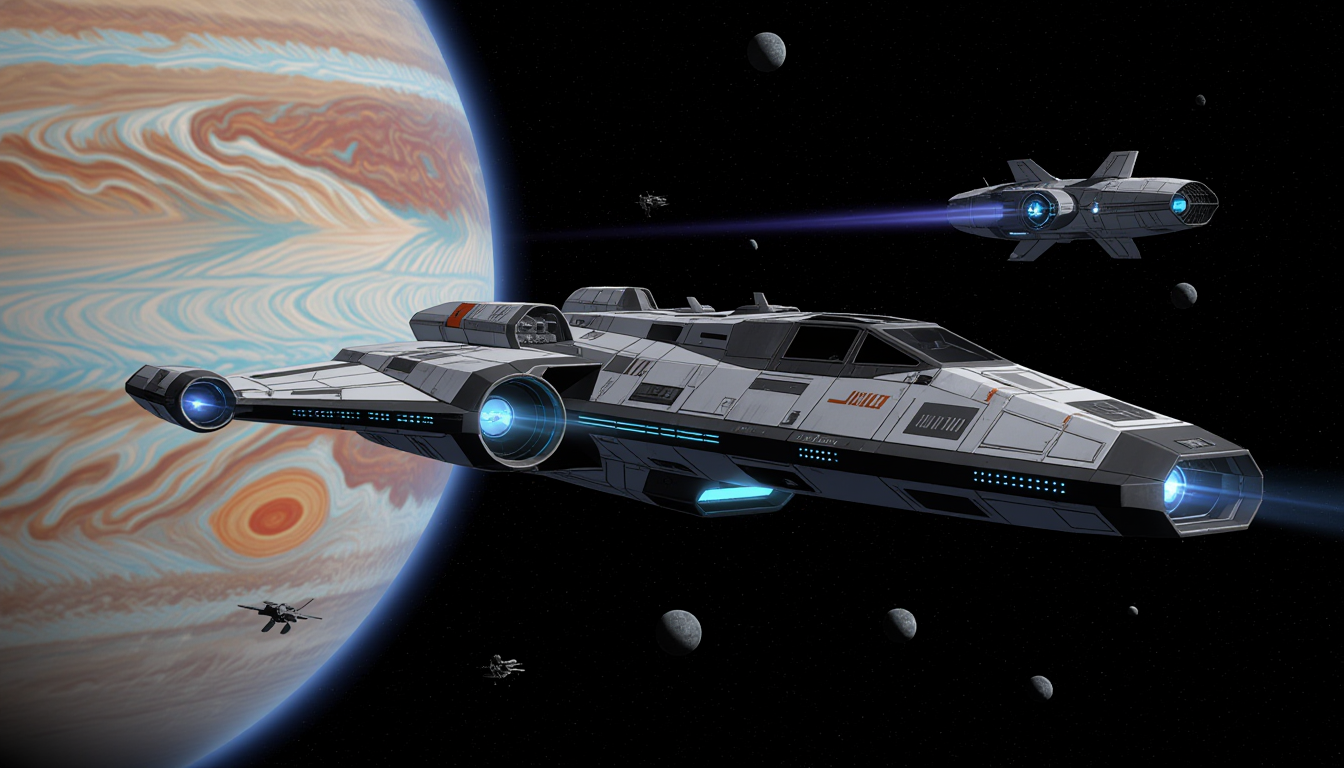 프롬프트: sci fi spaceship, space, interplanetary travel, jupiter