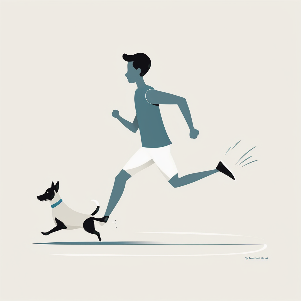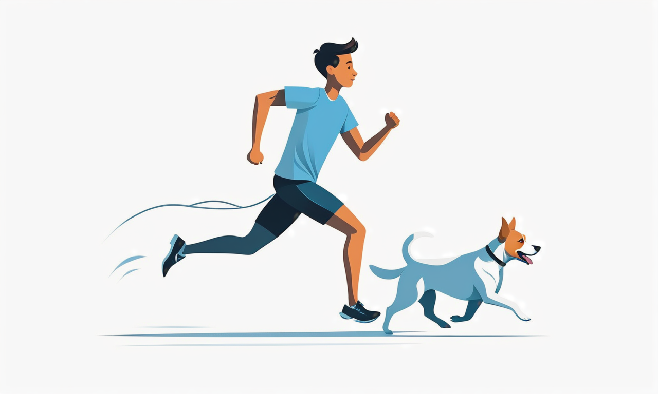 tech illustration, boy running with dog, simple minimal, by slack and dropbox, style of behance