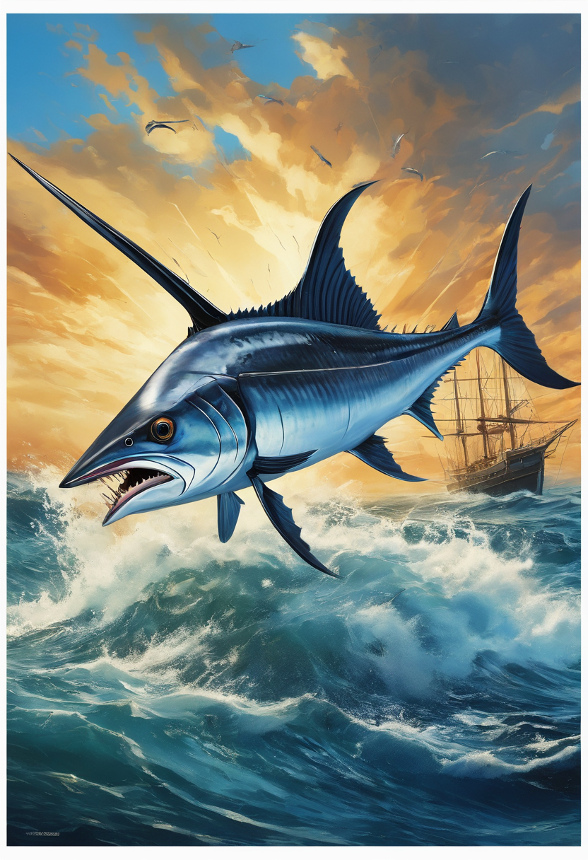 프롬프트: swordfish attacking, angry, masterpiece, best quality, high quality, good