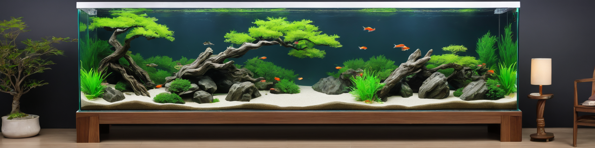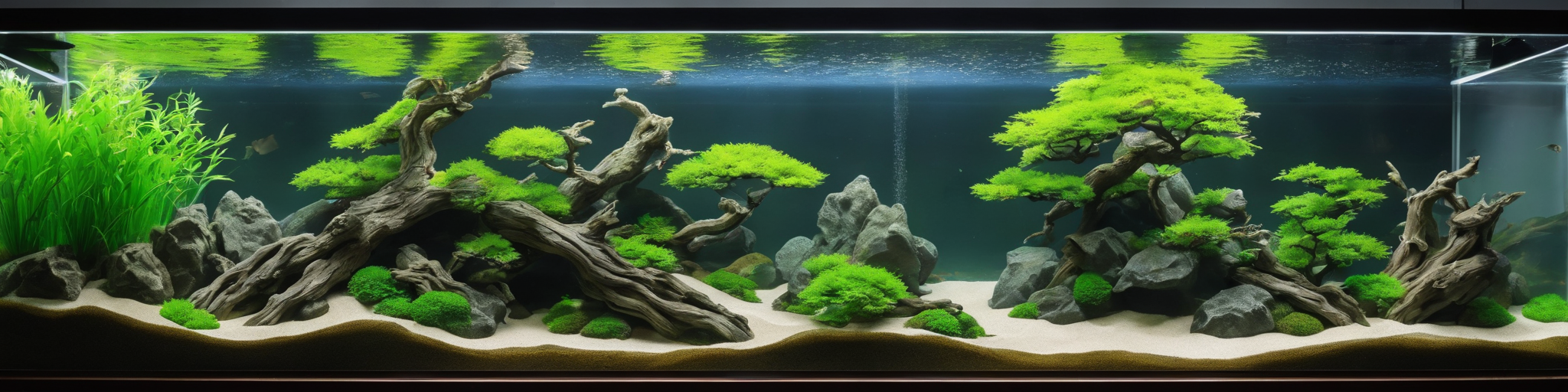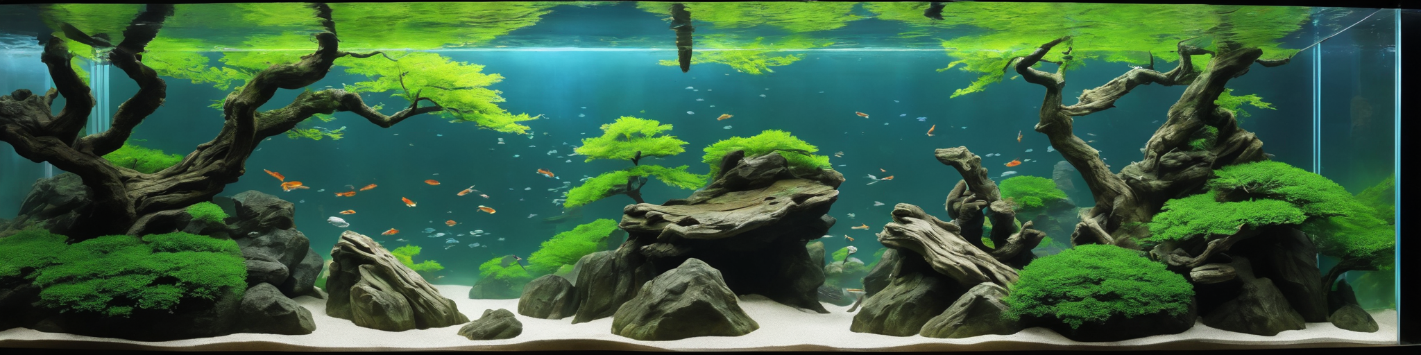 프롬프트: a photo of cube fish tank, japanese style, Yamano, meticulously arranged rocks, captivating driftwoods, lush freshwater aquatic [Style Selector - enhance]