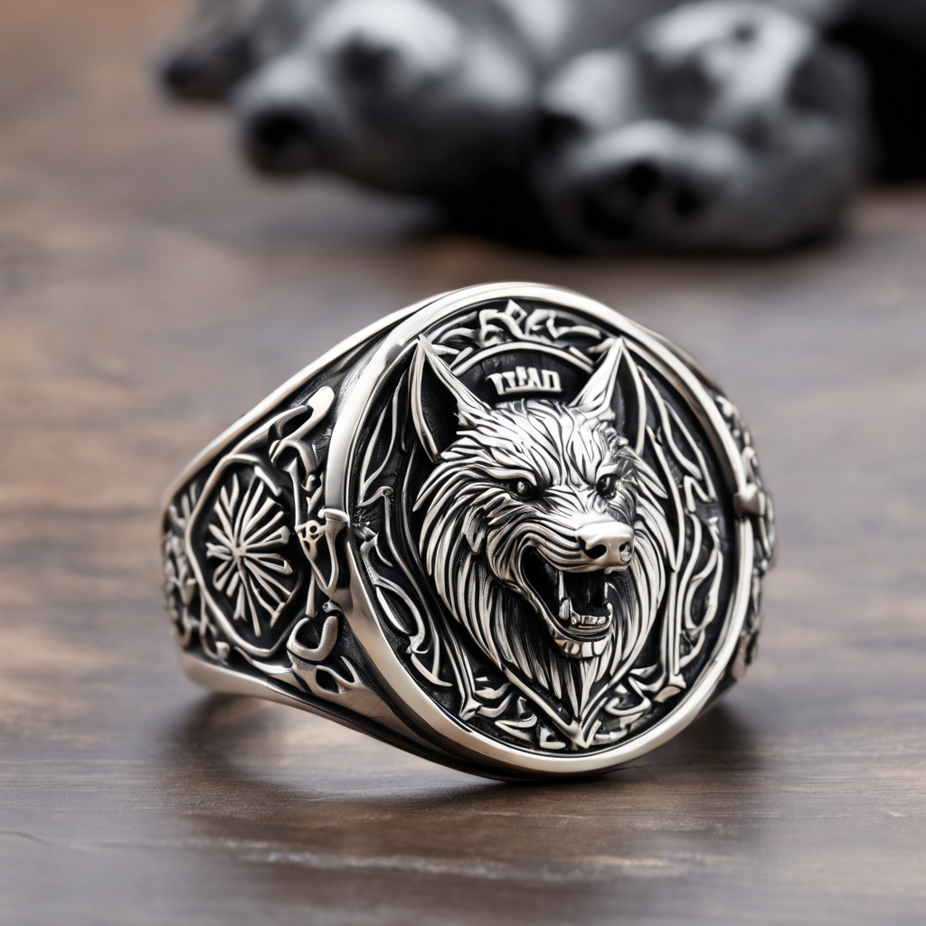 Silver Direwolf signet ring, macro [Style Selector - enhance]
